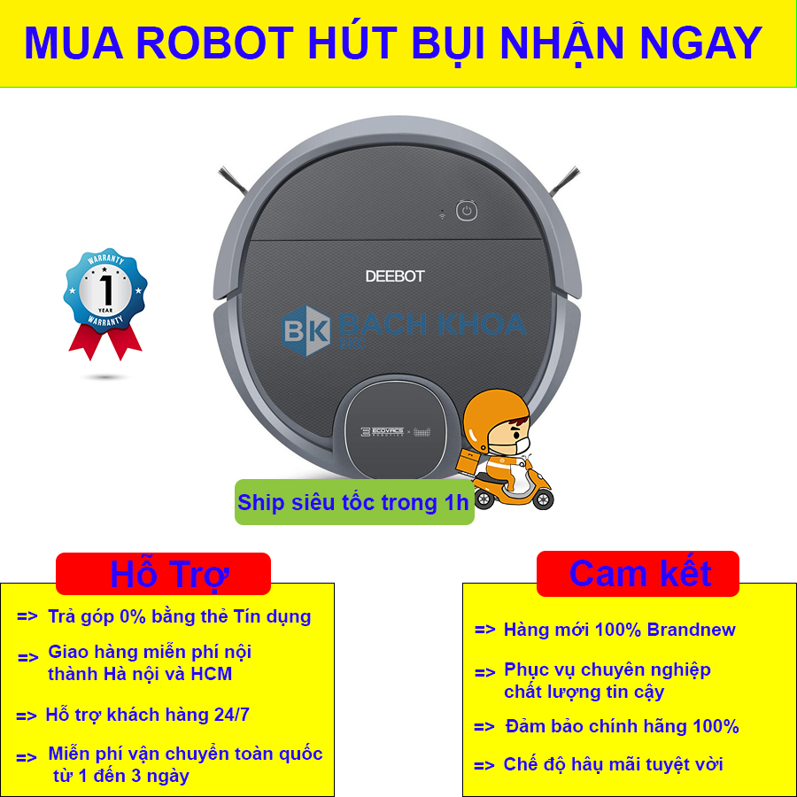 Tất cả những gì các bạn cần ở một chiếc máy robot hút bụi thông minh đều được tích hợp công nghệ cao có sẵn trên Ecovacs Deebot DN55. Bách Khoa BKC chuyên phân phối các dòng robot hút bụi thông minh uy tín và chất lượng. Chúng tôi sẽ đem đến cho các bạn những sản phẩm tốt nhất và hiện đại nhất.