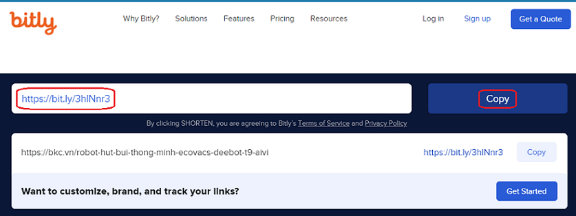 Bạn chỉ cần truy cập vào trang web Bitly.com hay Bit.ly, sau đó copy link và dán vào ô rút gọn, sau đó nhấn Shorten, Bit.ly sẽ trả cho bạn một link ngắn.