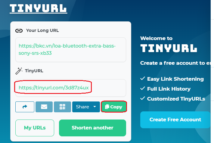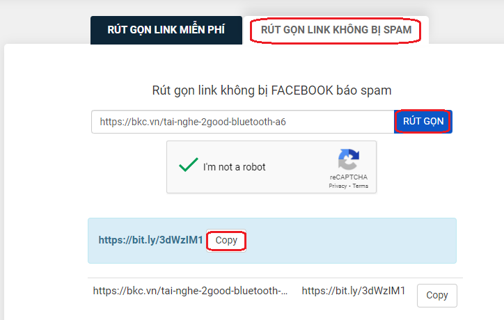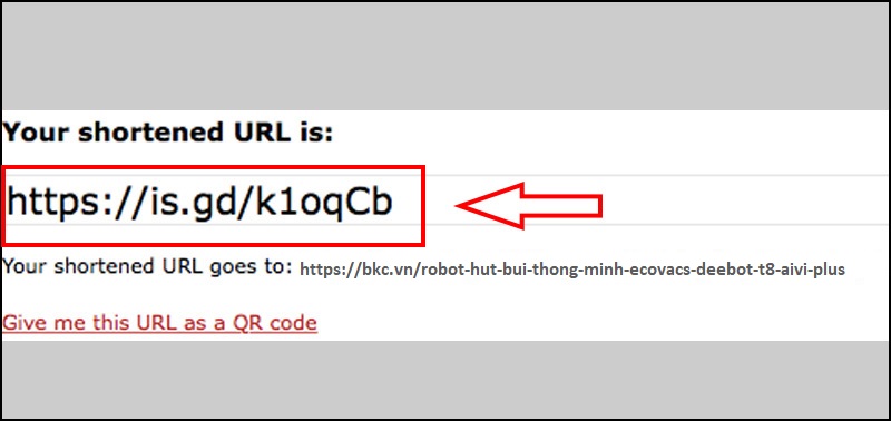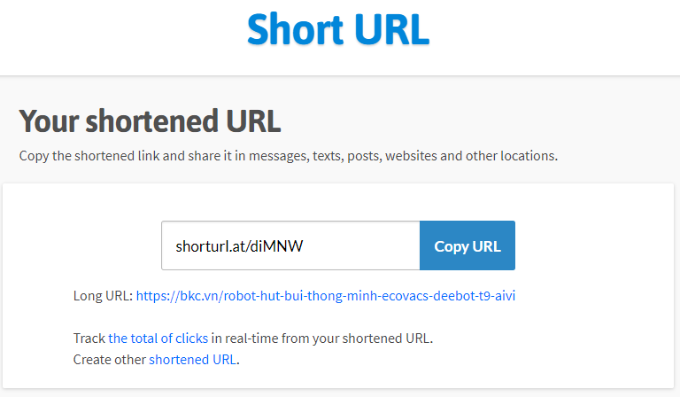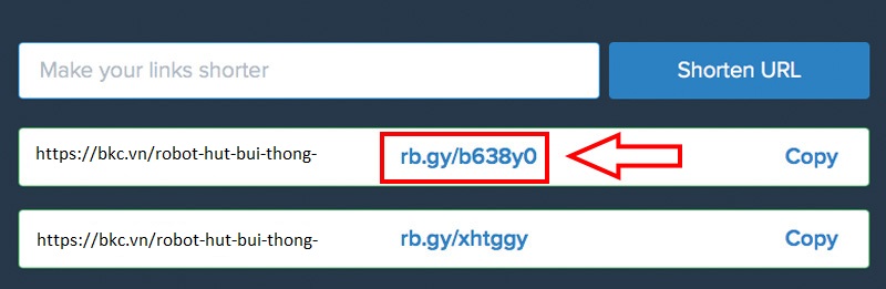 Sau đó, hệ thống sẽ tự động rút gọn link của bạn như hình dưới đây: