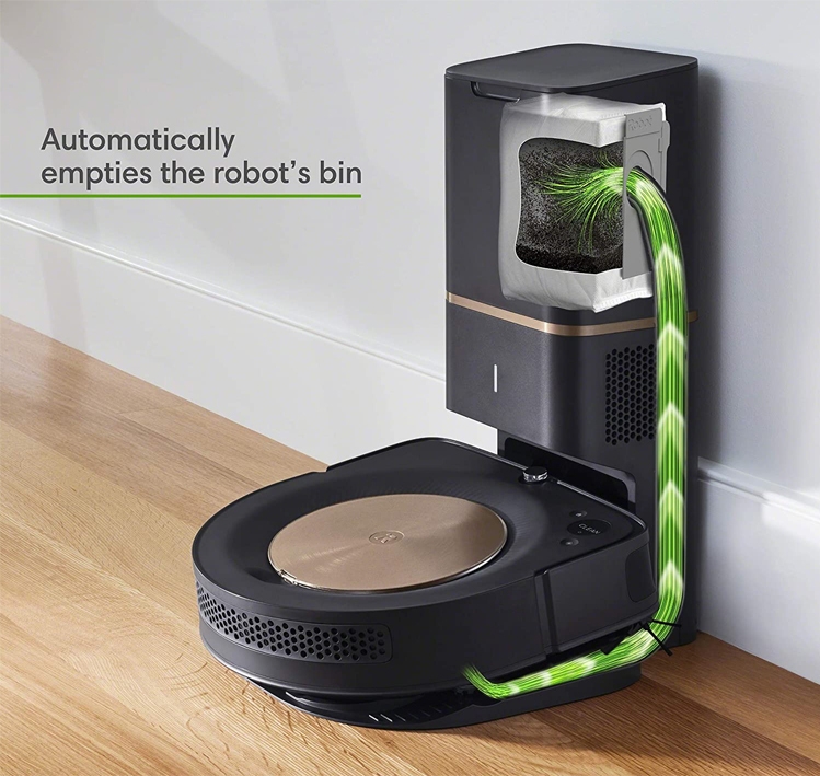S9+ là robot hút bụi cao cấp nhất tới từ thương hiệu robot hút bụi của Mỹ - iRobot. Sản phẩm đi kèm một dock tự động thu gom rác trong thân. Người dùng vì vậy chỉ cần đổ rác, bụi từ dock thay vì phải dọn dẹp hộc đựng trên robot thường xuyên như các sản phẩm thông thường. Sản phẩm sử dụng túi rác công nghệ AllergenLock thiết kế riêng cho S9+ cho phép lọc các chất gây dị ứng như phấn hoa, nấm mốc.