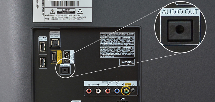 Jack cắm 3.5 mm trên tivi cũng sẽ có hình dáng và kích thước giống như lỗ cắm loa trên laptop hay là điện thoại của chúng ta, và thường sẽ có thêm ký hiệu AUDIO OUT.
