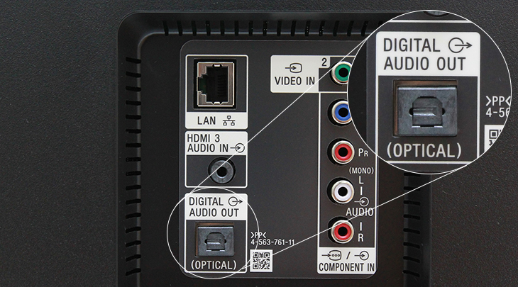 Dấu hiệu để nhận biết cổng Optical trên tivi đó là có hình vuông (khi bật tivi thường có đèn màu đỏ), đi kèm ký hiệu DIGITAL AUDIO OUT (OPTICAL).