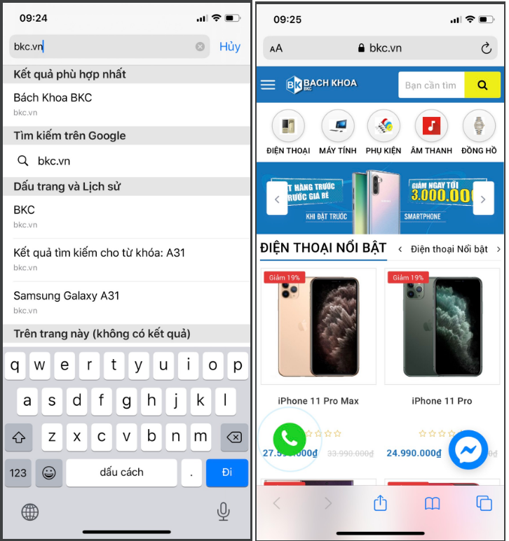 Bạn gõ một URL chẳng hạn như Bkc.vn ở khung tìm kiếm, chọn Go để đi thẳng đến website mà không cần phải chọn các gợi ý trong tìm kiếm.