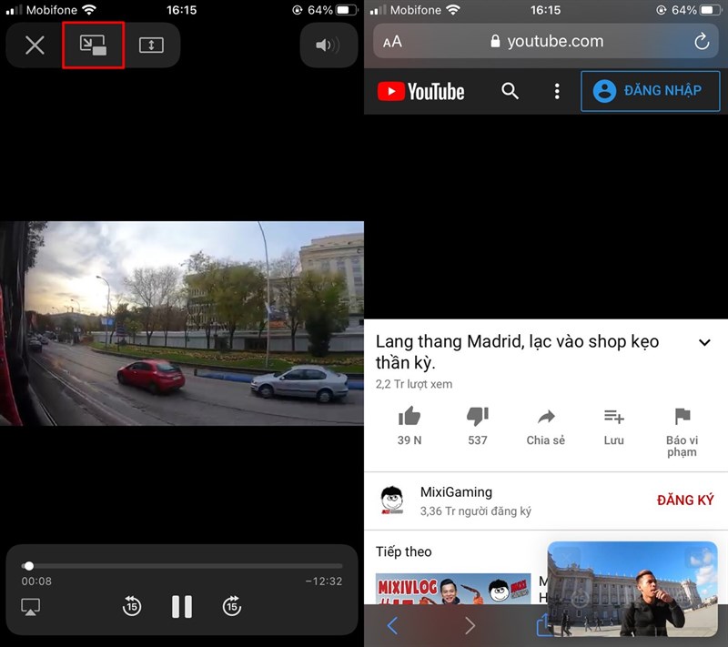 Chính là tính năng xem video thu nhỏ đình đám trên iOS 14. Bạn chọn nút Picture in Picture để xem ở chế độ cửa sổ nhỏ, tiếp tục lướt web hoặc làm việc trên ứng dụng khác trong khi vẫn bật video.