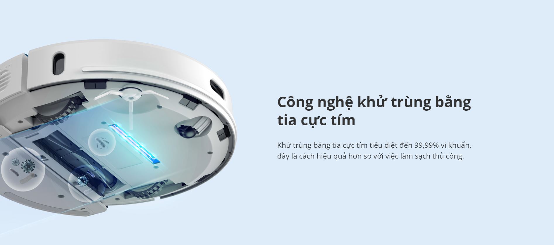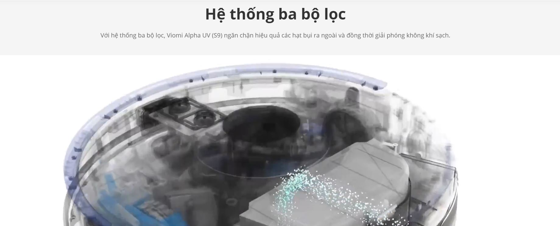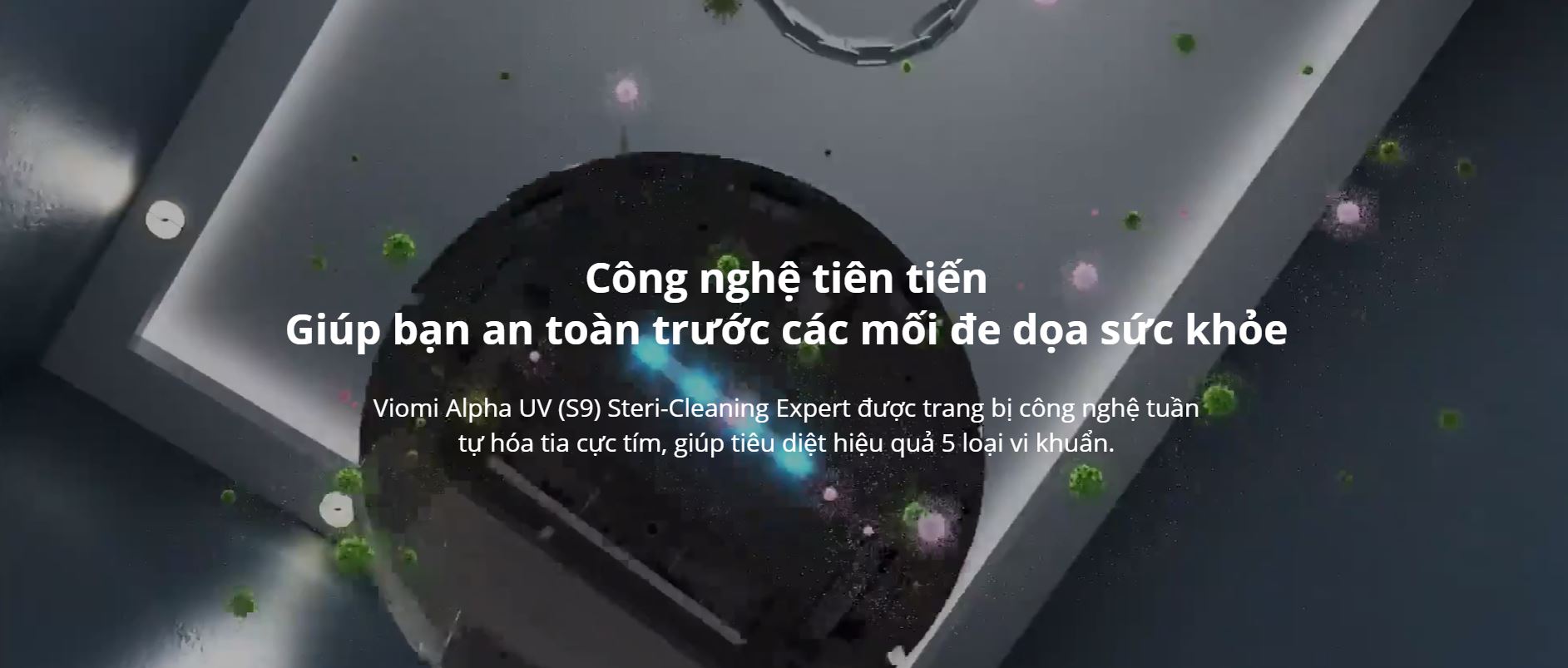 Robot hút bụi Viomi Alpha UV (S9) – Chuyên gia làm sạch bằng tia cực tím. Công nghệ tiên tiến giữ cho bạn an toàn trước các mối đe dọa sức khỏe Viomi Alpha UV Steri-Cleaning Expert (S9) được trang bị công nghệ tuần tự hóa tia cực tím, giúp tiêu diệt hiệu quả 5 loại vi khuẩn.