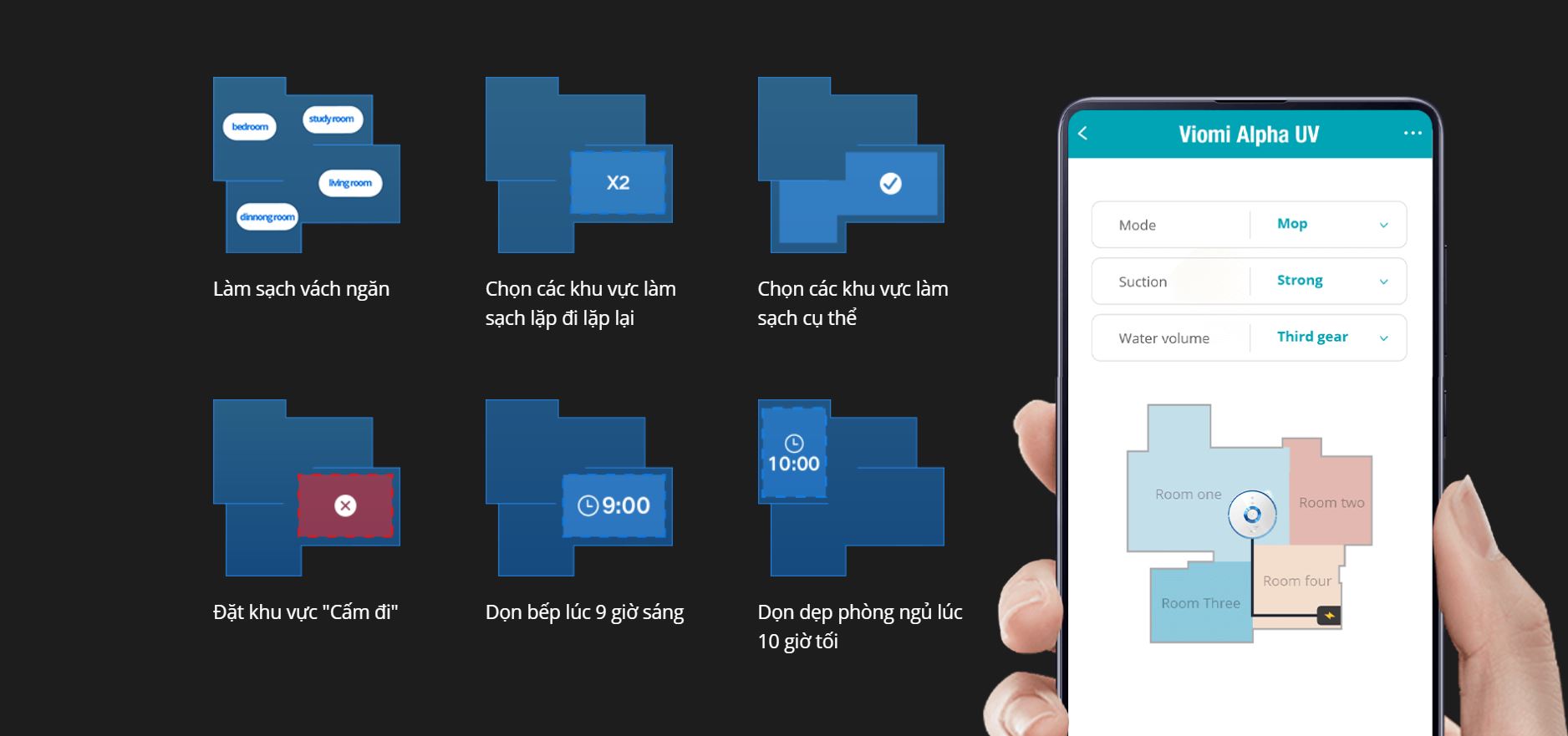 Điều khiển Viomi Alpha UV (S9) bằng điện thoại thông minh, có thể lên lịch quét dọn cho robot, điều khiển từ xa…