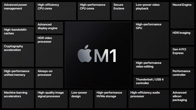 Apple M1 là chip đầu tiên dựa trên kiến trúc ARM được sản xuất nhằm thay thế vi xử lý Intel dùng trên máy tính Mac.