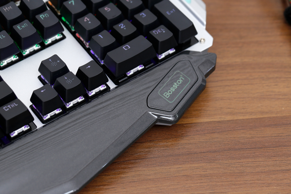 Bàn phím cơ Bosston MK915 sở hữu kiểu dáng thể thao, mạnh mẽ đầy cá tính, cùng với những đường viền đầy màu sắc. Điểm nổi bật của bàn phím cơ MK915 đó là dòng chữ “Bosston” được khắc ngay trên bàn phím với nét khắc laser chống mờ làm thu hút được nhiều game thủ, đặc biệt có thể sử dụng thoải mái vào ban đêm.