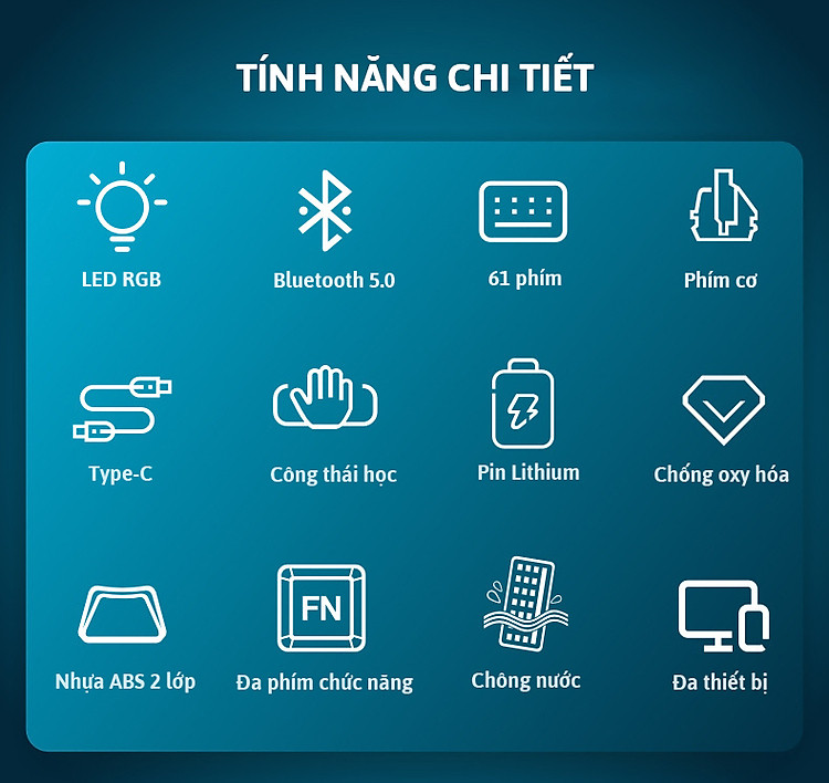- Bàn phím sẽ tự động đưa vào chế độ ngủ sau 1 phút không sử dụng, giúp tiết kiệm pin