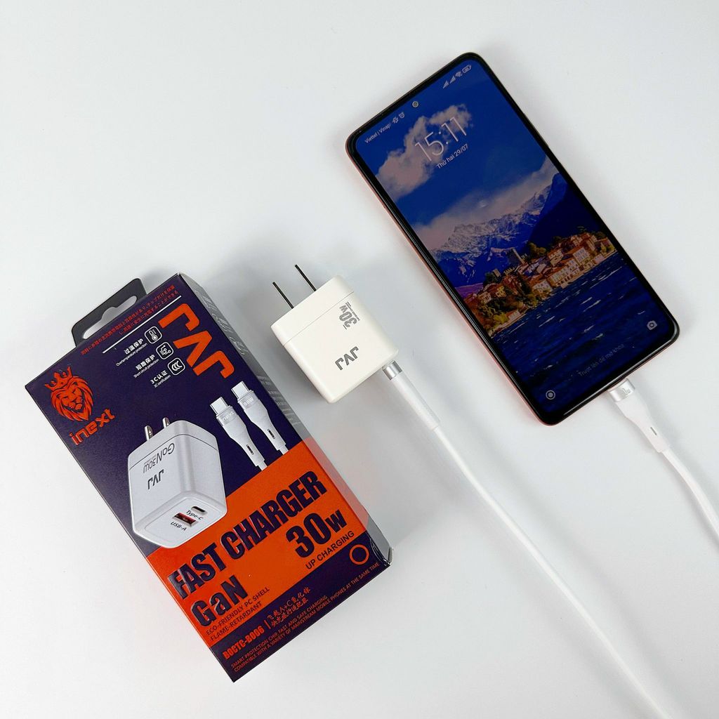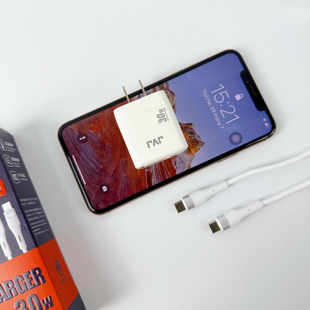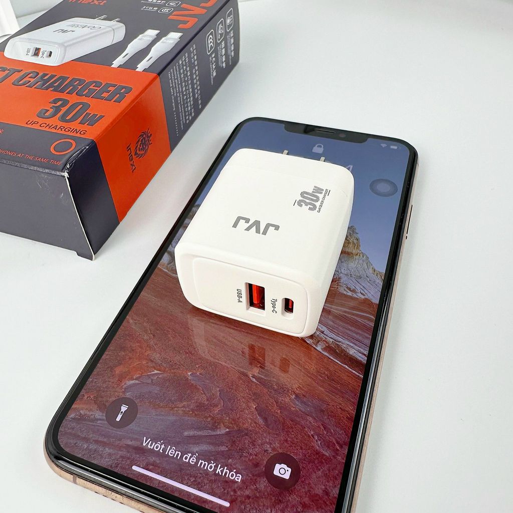 Củ sạc nhanh, sử dụng công nghệ GaN sạc nhanh vượt trội 2 cổng OUT sạc nhanh USB và TypC cho ra công suất MAX 30W