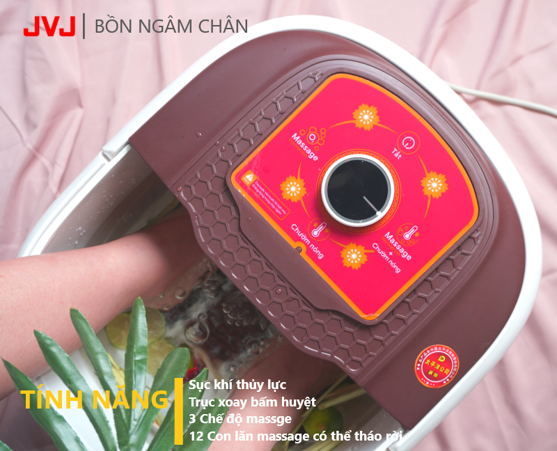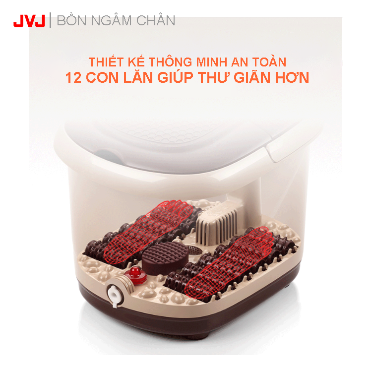 - Bồn ngâm chân JVJ là thiết bị tốt để chăm sóc sức khỏe. Được trang bị hệ thống làm nóng và duy trì nhiệt độ nước ở 5 mức từ 35 - 48°C