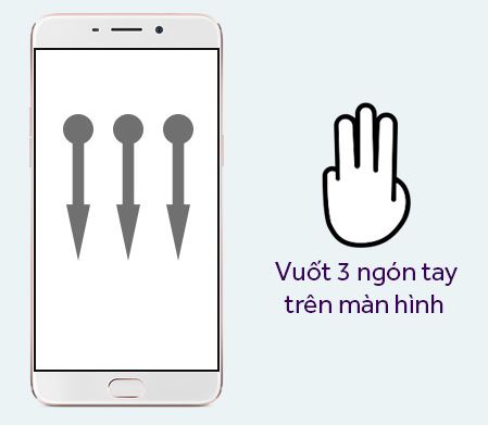 Cách 3 : Vuốt 3 ngón tay từ cạnh trên màn hình xuống để chụp. Đa số máy Oppo, Xiaomi... có thể điều chỉnh được