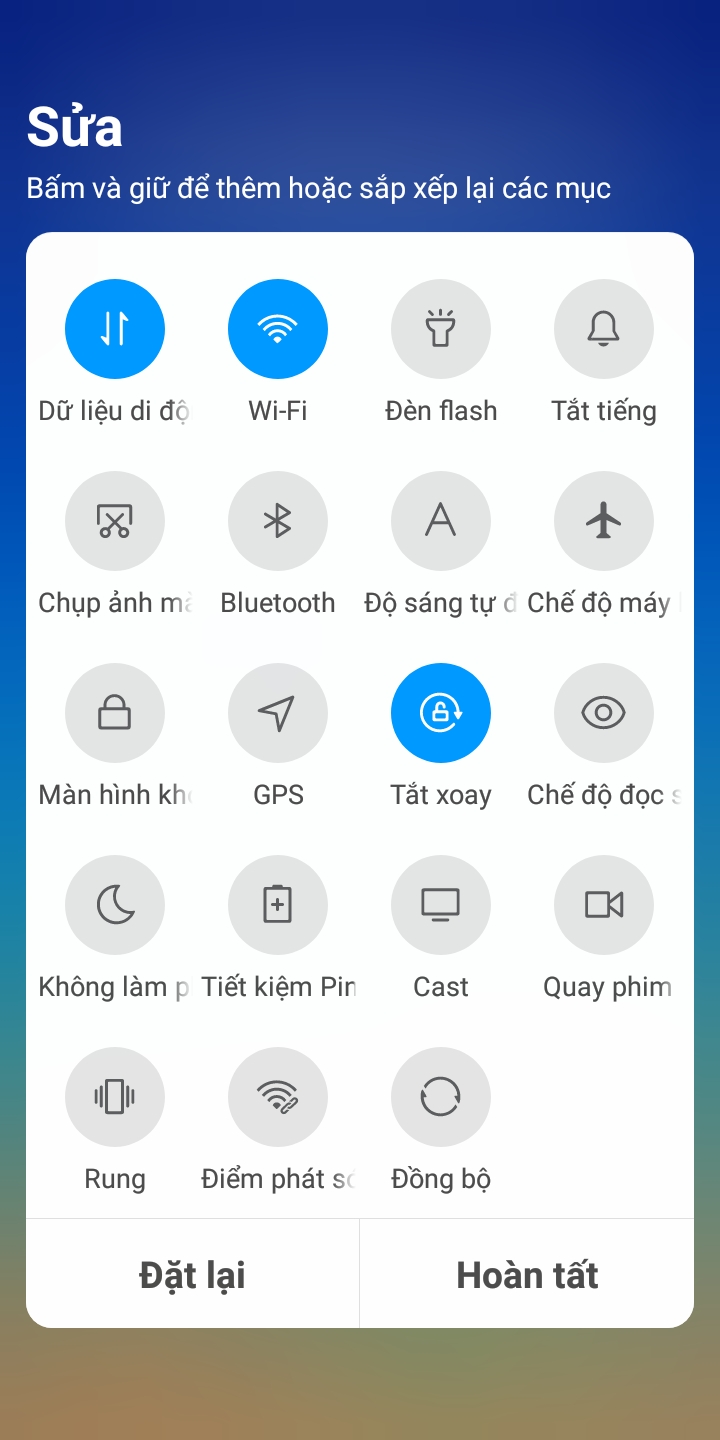 Ngoài ra , Menu này người dùng có thể tùy chỉnh ưu tiên tính năng thường dùng ở vị trí thuận lợi nhất ( Như Wifi, 4G, Quay phim màn hình ... )