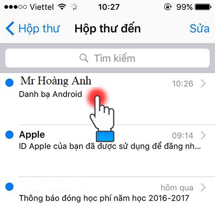 Đợi khi điện thoại Android gửi thư xong tiếp tục vào iPhone và chọn ứng dụng Mail.