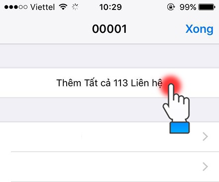 Bước 10: iPhone sẽ mở file danh bạ này lên với đầy đủ các số điện thoại mà bạn đã xuât từ điện thoại Android --> Click vào chọn Thêm tất cả Liên hệ.