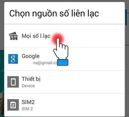 Bước 5: Chọn Mọi số liên lạc để copy hết danh bạ hiện có.