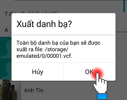 - Sau khi máy xuất xong danh bạ thì bạn truy cập vào phần quản lý file trên máy và tìm đến file bạn vừa xuất. Bấm và giữ vào file có đuôi .vcf vừa nhận được.