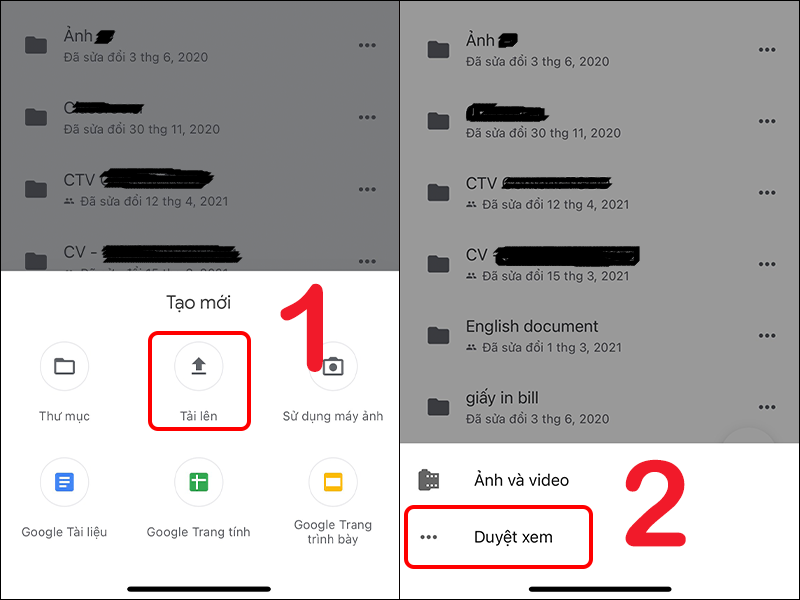 Bước 2: Chọn Tải lên > Nhấn vào Duyệt xem.
