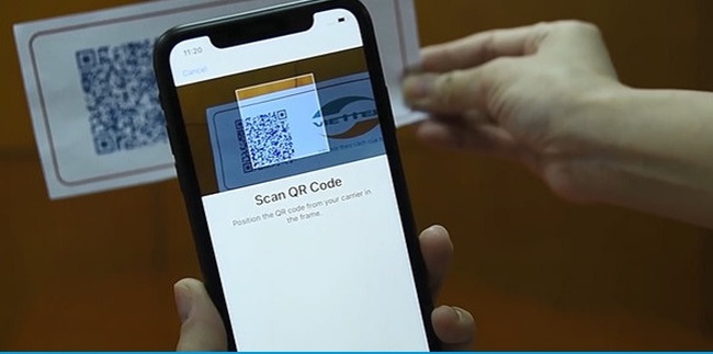 - Bước 3: Quét mã code QR của nhà mạng cung cấp bằng Camera. Mỗi SIM sẽ có 1 mã QR khác nhau.