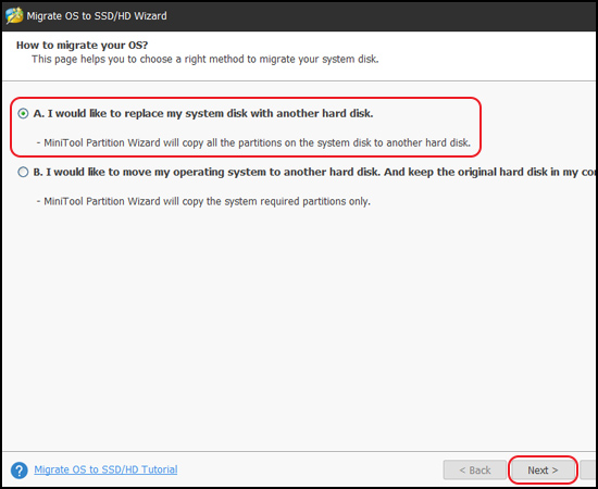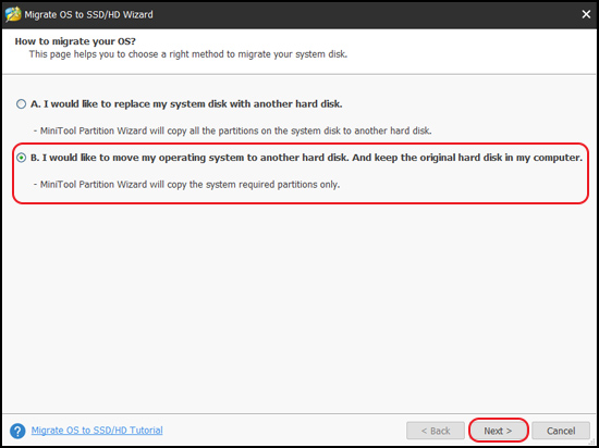 B: Chỉ di chuyển hệ điều hành Windows sang ổ cứng mới. Không di chuyển phân vùng khác (bạn sử chọn lựa chọn này khi dùng hai ổ cứng HDD và SSD song song).