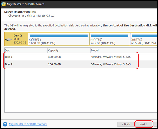 Bạn hãy chọn ổ cứng mới để chuyển hệ điều hành sang > chọn Next.
