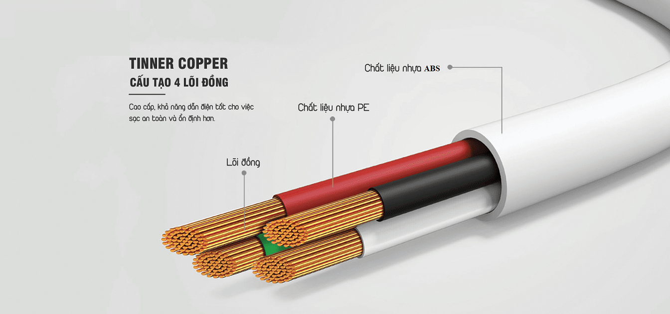 Lớp vỏ được làm từ nhựa ABS cho dộ bền cao, chịu nhiệt tốt, cho sản phầm bền bỉ hơn , an toàn cho thiết bị sạc