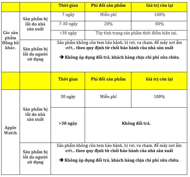 CHÍNH SÁCH ĐỔI TRẢ SẢN PHẨM ĐỒNG HỒ