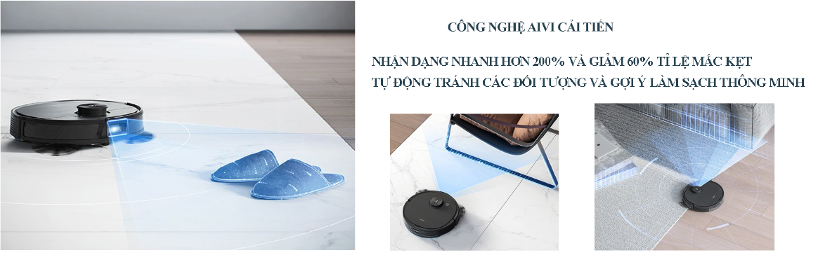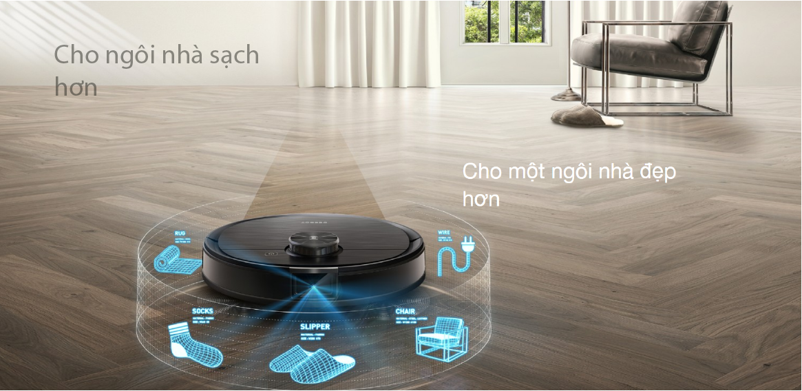 • Trang bị Camera giúp Robot nhận diện những chướng ngại vật như vớ, dép, giày, đồ chơi .v.vv.v. giúp hạn chế tối đa bị mắc kẹt