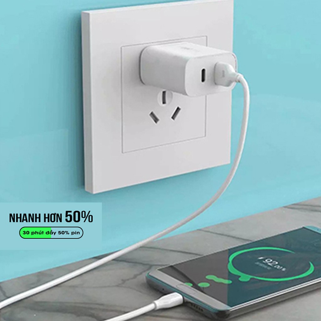 Thiết kế 2 cổng, sạc nhanh 20W
