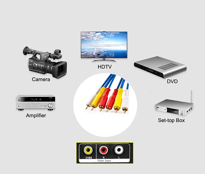+ Cáp tín hiệu AV (Video Audio) loại tốt độ dài 3m kết nối Đầu DVD, Tivi, Máy chiếu, Amply, Dàn âm thanh