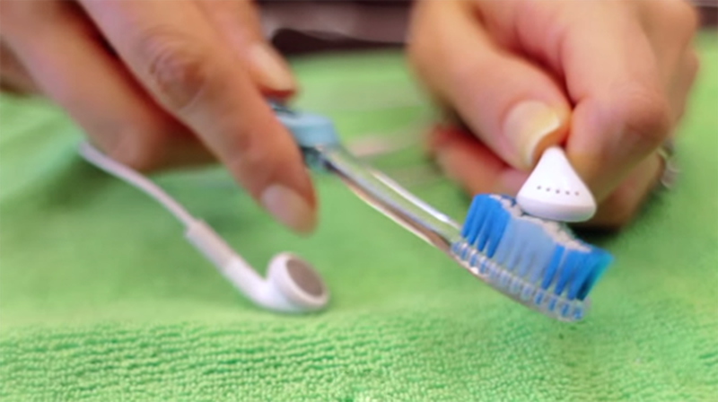 - Bước 1: Dùng bàn chải sạch và khô để vệ sinh nhẹ nhàng những lớp bụi bẩn bám trên tai nghe.