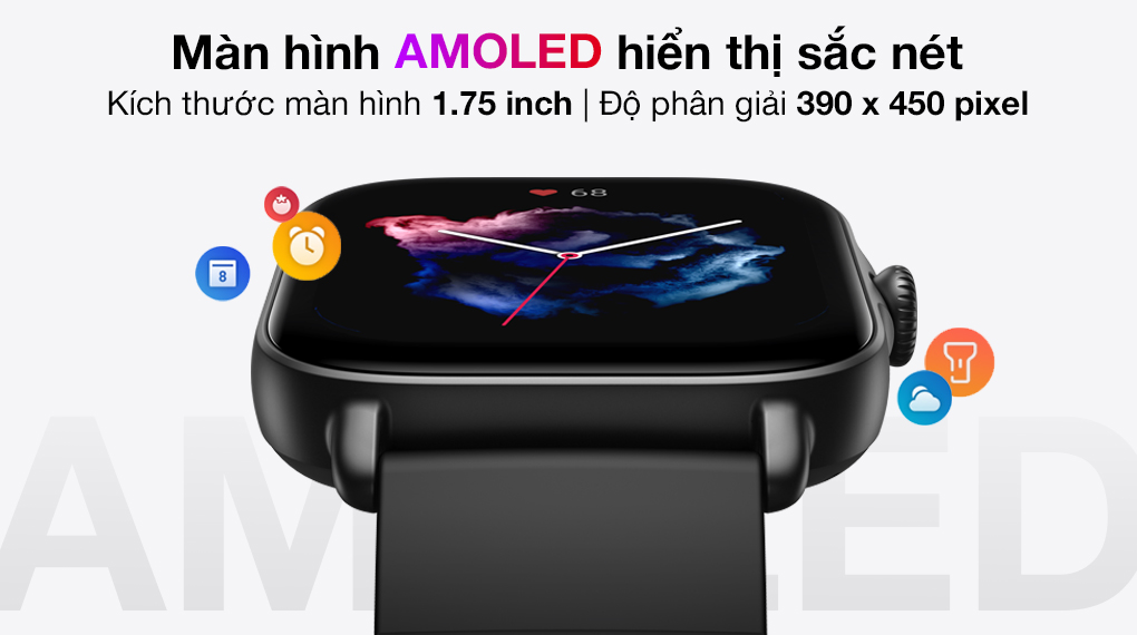 Màn hình AMOLED kích thước 1.75 inch với độ phân giải 390 x 450 pixel cho chất lượng hiển thị hình ảnh chân thực, sắc nét, tái tạo màu tự nhiên và tiết kiệm pin nhưng vẫn đảm bảo được độ mỏng cuốn hút cho chiếc đồng hồ. Mặt đồng hồ được trang bị lớp kính cường lực cứng cáp, độ bền cao giúp bảo vệ đồng hồ ngay cả trong các hoạt động mạnh dễ va chạm.