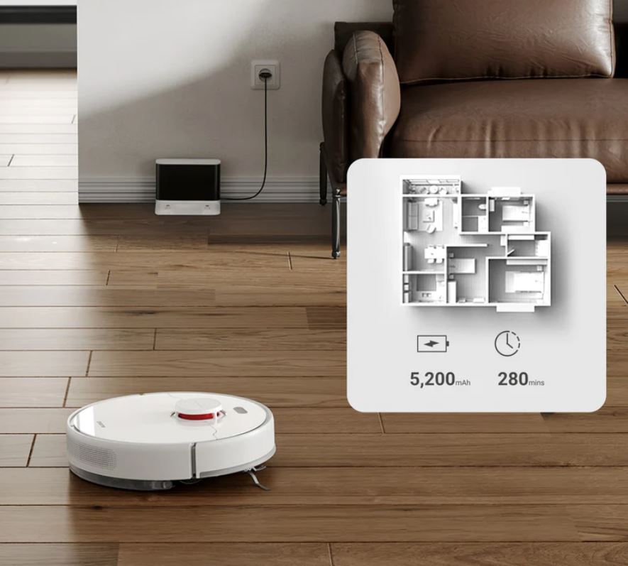 Tận hưởng phạm vi làm sạch từ góc này sang góc khác với pin 5.200mAh cung cấp khả năng làm sạch liên tục lên đến 280 phút*. Khi sắp hết điện, rô-bốt của bạn sẽ tự động quay lại để sạc lại và sau đó tiếp tục công việc dọn dẹp từ đúng nơi nó đã dừng lại để đảm bảo toàn bộ ngôi nhà của bạn được làm sạch.