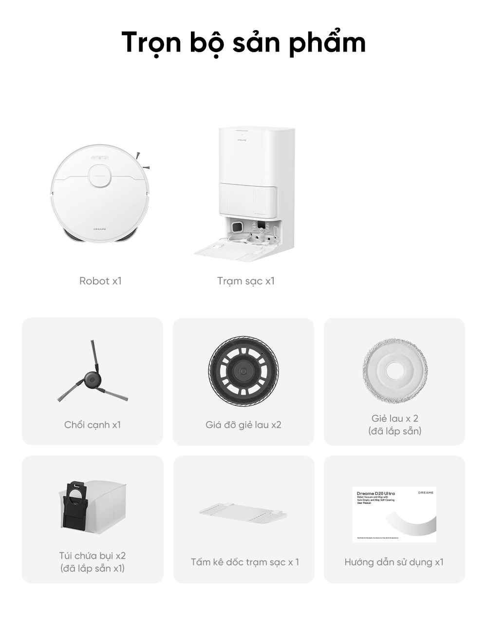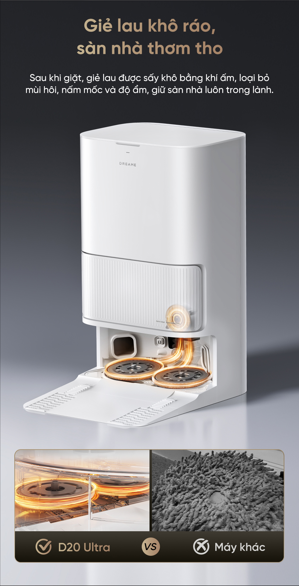 Dreame D20 Ultra là robot hút bụi lau sàn thông minh cao cấp, mang đến giải pháp làm sạch toàn diện cho ngôi nhà của bạn. Với lực hút mạnh mẽ, hệ thống lau nhà tiên tiến, và trạm sạc đa chức năng, giúp bạn tiết kiệm thời gian và công sức cho việc dọn dẹp.