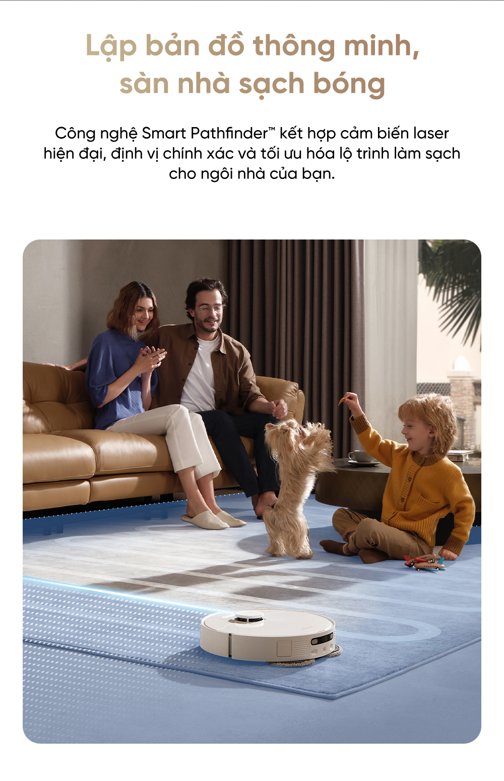 Tránh chướng ngại vật 3DAdapt™: Định tuyến đường đi tinh tế, không lo va chạm chướng ngại vật, thú cưng nhưng vẫn đảm bảo làm sạch quanh đồ đạc, không bỏ sót vị trí nào.