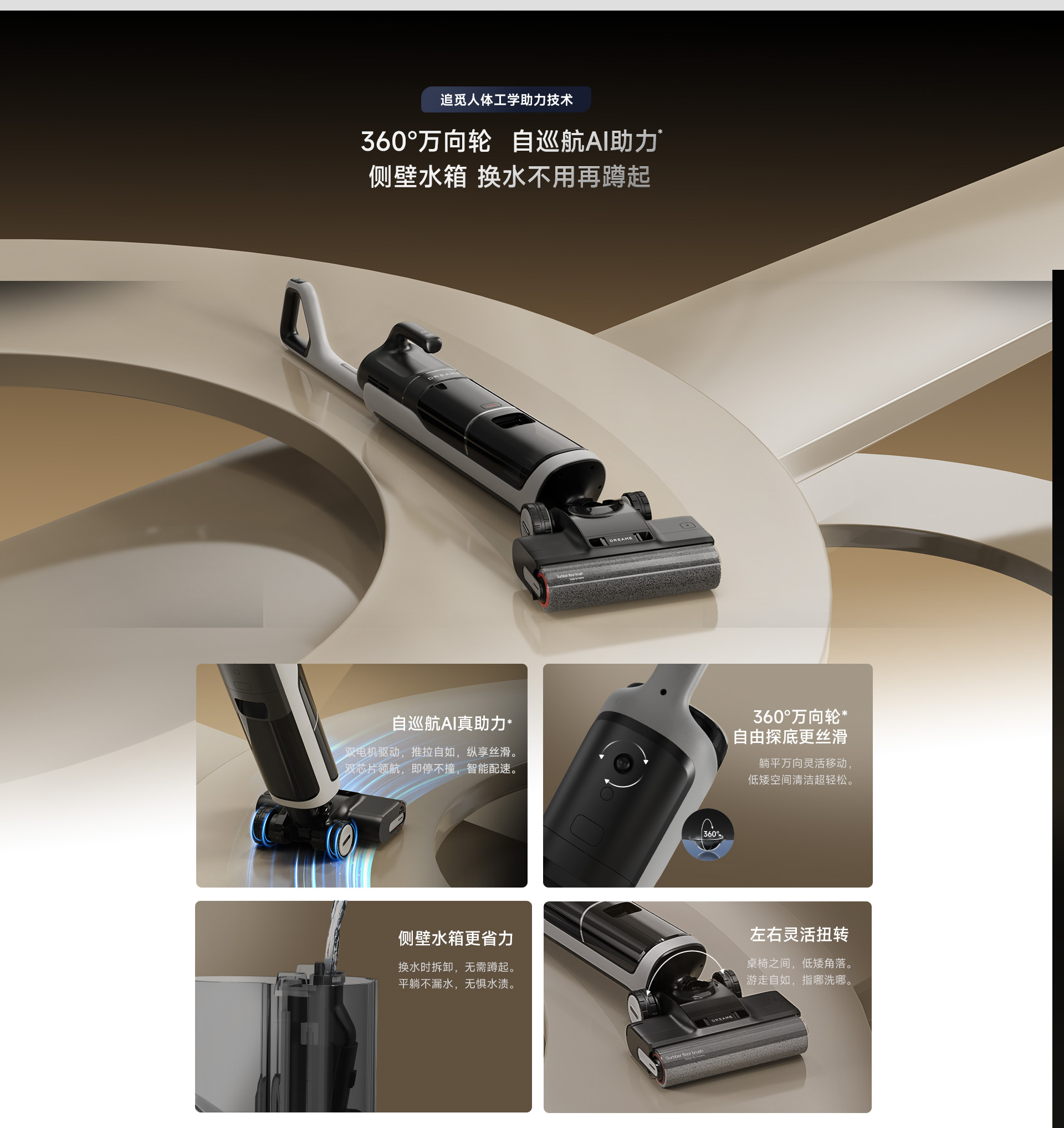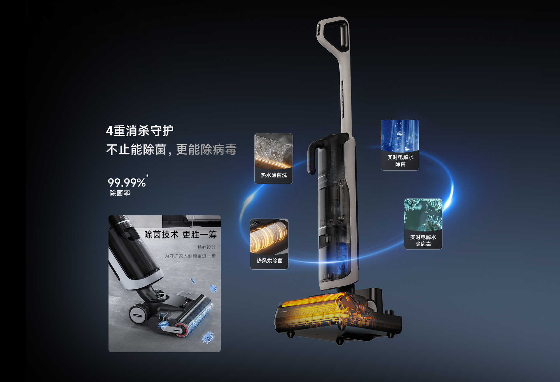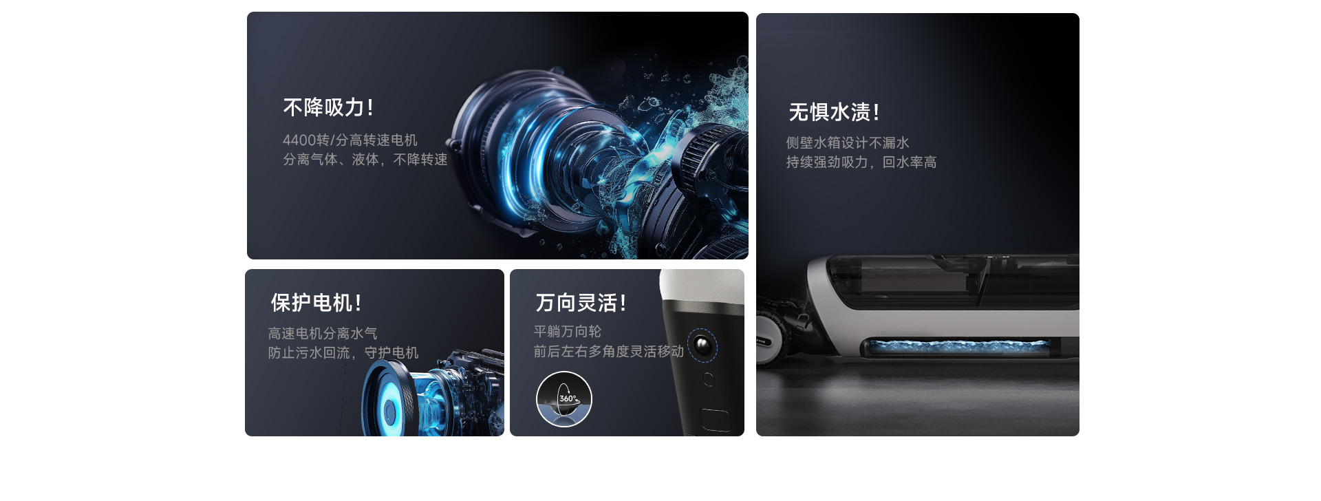- Hệ thống chống rối chủ động, kết hợp chải, cắt, hút và rửa.