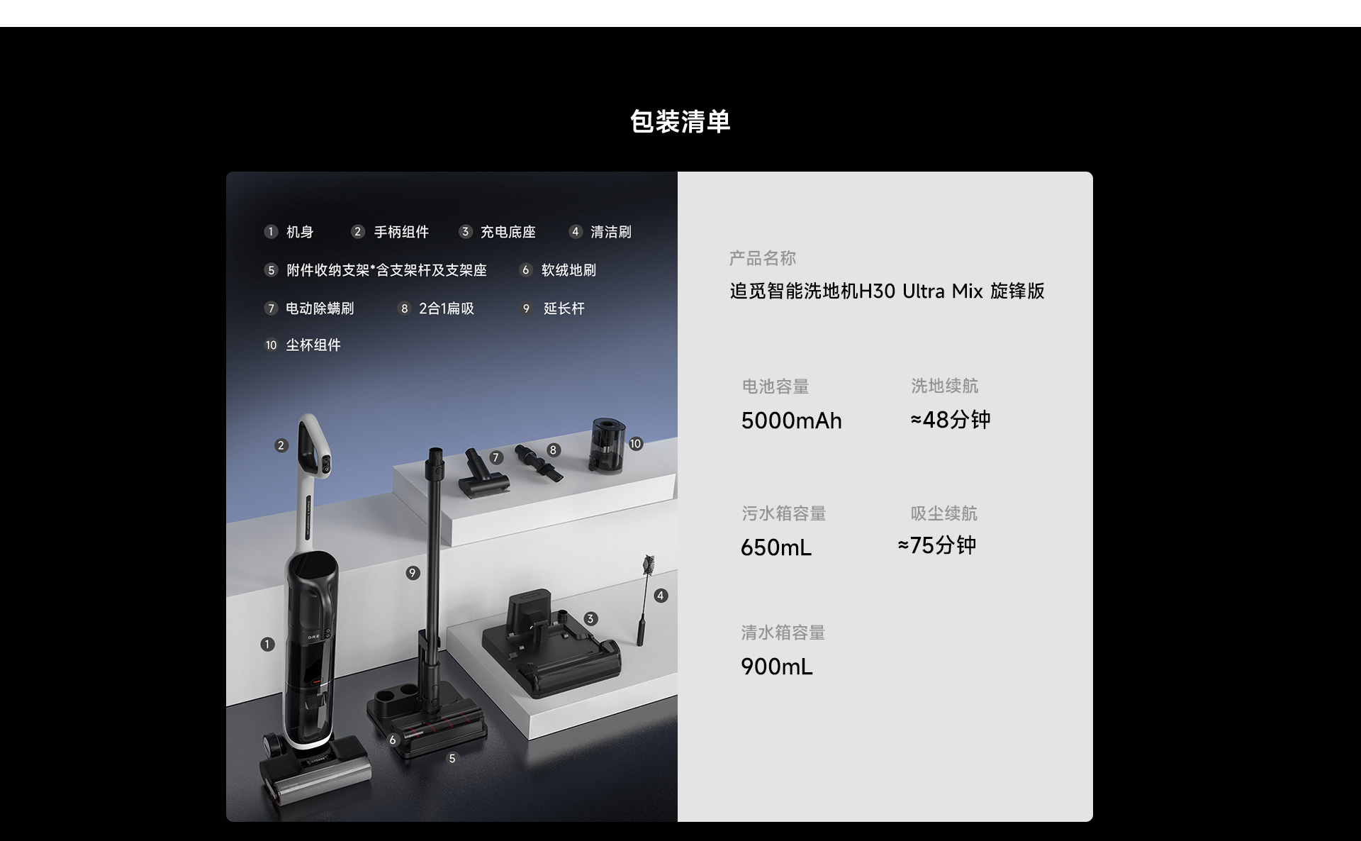 - Thời gian sử dụng: Lên đến 48 phút (lau nhà), 75 phút (hút bụi)