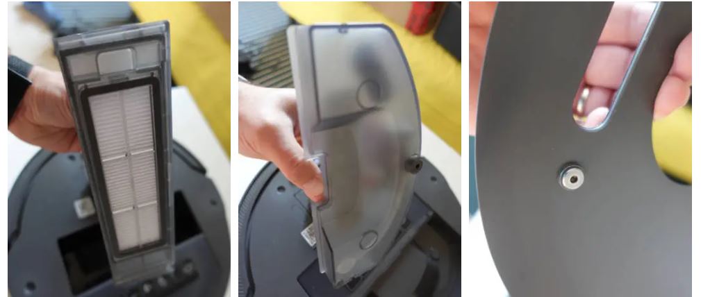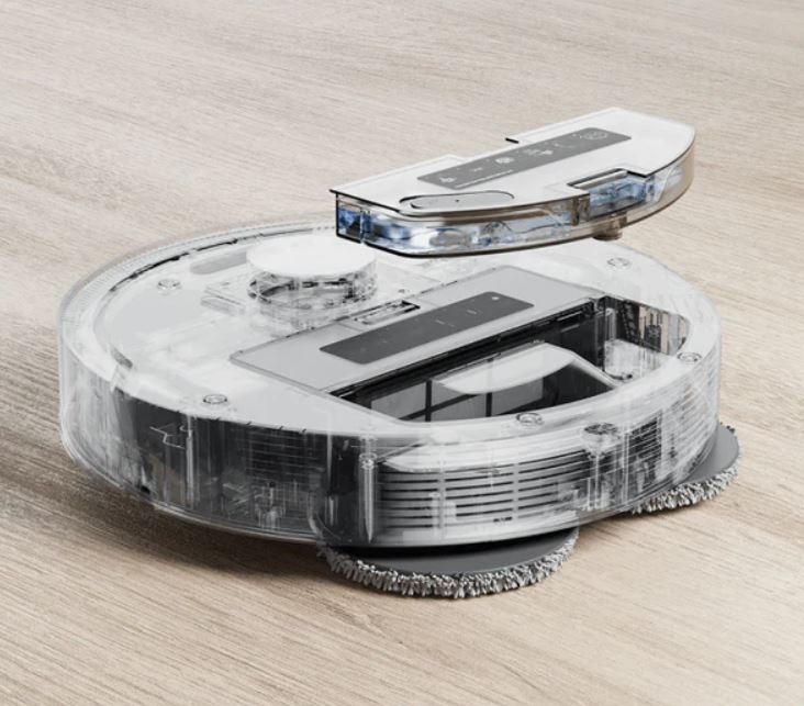 Ở phần trên, ngoài tháp pháo điển hình dành cho cảm biến LIDAR đảm nhiệm việc phát hiện môi trường, còn có ba nút dành riêng cho các chức năng chính: bật và tắt; quay trở lại đế sạc; bắt đầu dọn dẹp. Nắp trên có chốt nam châm và tháo hoàn toàn để tiếp cận lớn bình chứa bụi 450ml và bình đựng nước sạch 190ml.