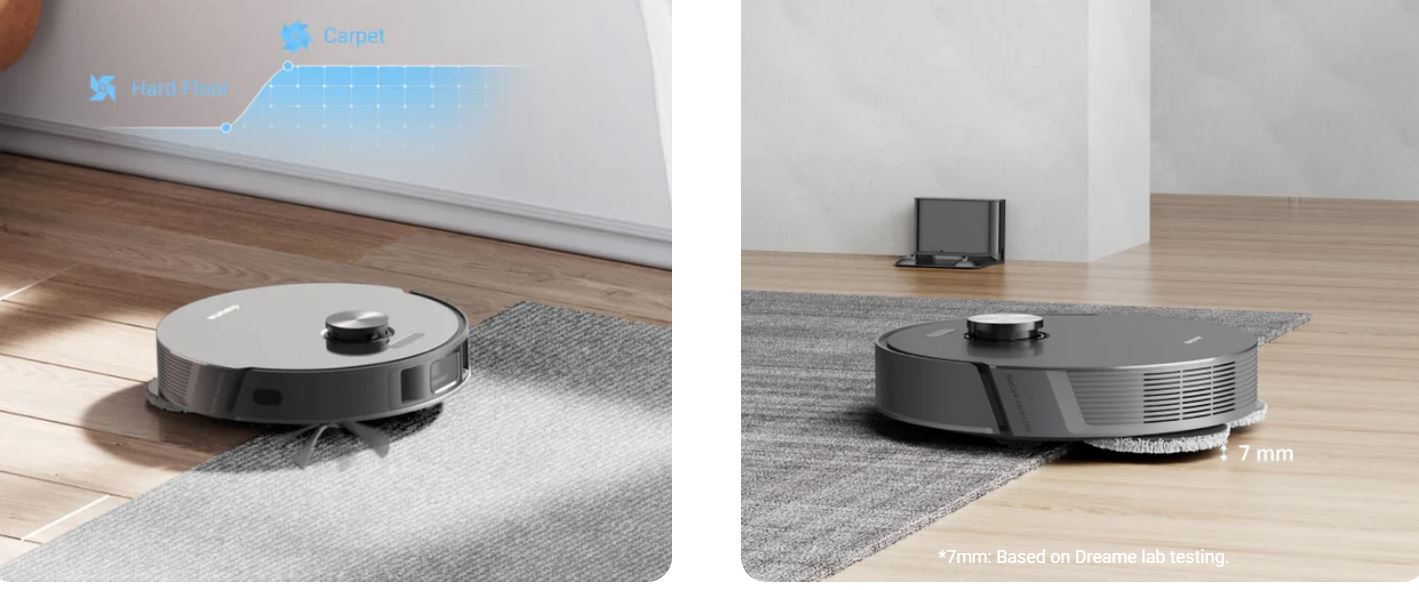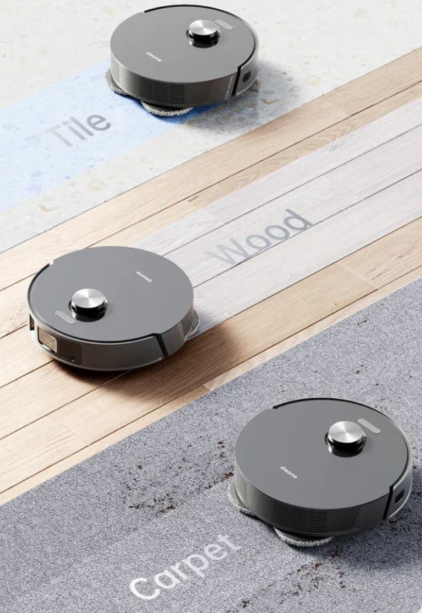Cảm biến chính xác nhận diện thảm để tự động nâng khăn và tăng cường lực hút để làm sạch sâu, dễ dàng xử lý bụi bẩn, bụi bẩn và mảnh vụn khó chịu. Công nghệ siêu âm xác định chính xác thảm và thảm. L10s Pro nâng miếng lau của nó lên 7mm* để giữ cho thảm luôn khô ráo và tránh kéo giẻ lau bẩn trên sàn sạch khi quay trở lại đế.
