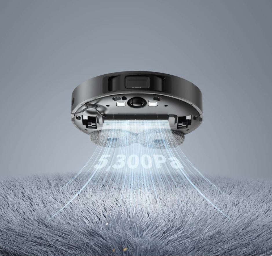 Sức hút mạnh mẽ đáp ứng khả năng lau nhà tốc độ cao.Lực hút mạnh mẽ, 5.300Pa và chổi lau nhà quay kép tiên tiến mang đến khả năng làm sạch tự động linh hoạt cho cả sàn trải thảm và sàn cứng.