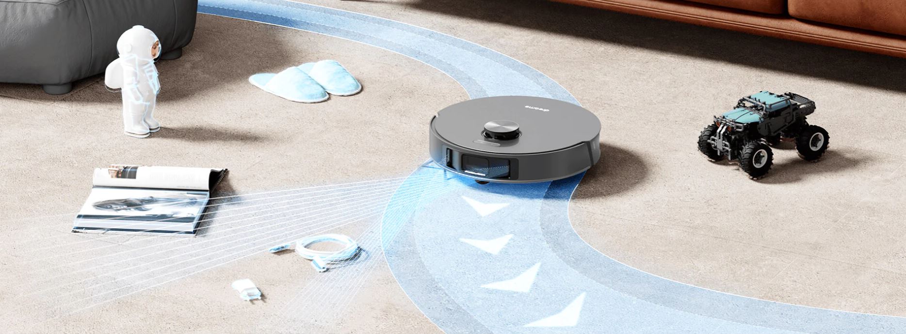 Cảm biến quang học 3D giúp Robot nhận biết và đoán trước những chướng ngại vật: giày dép, sợi chỉ, đồ chơi và thậm chí cả phân chó. Do đó giúp tránh khỏi những tình huống khó chịu khi rô-bốt có thể phải ngừng làm sạch hoặc thậm chí tệ hơn. Nói chung, nó cải thiện khả năng điều hướng trong trường hợp này cũng là lợi thế về hiệu quả.