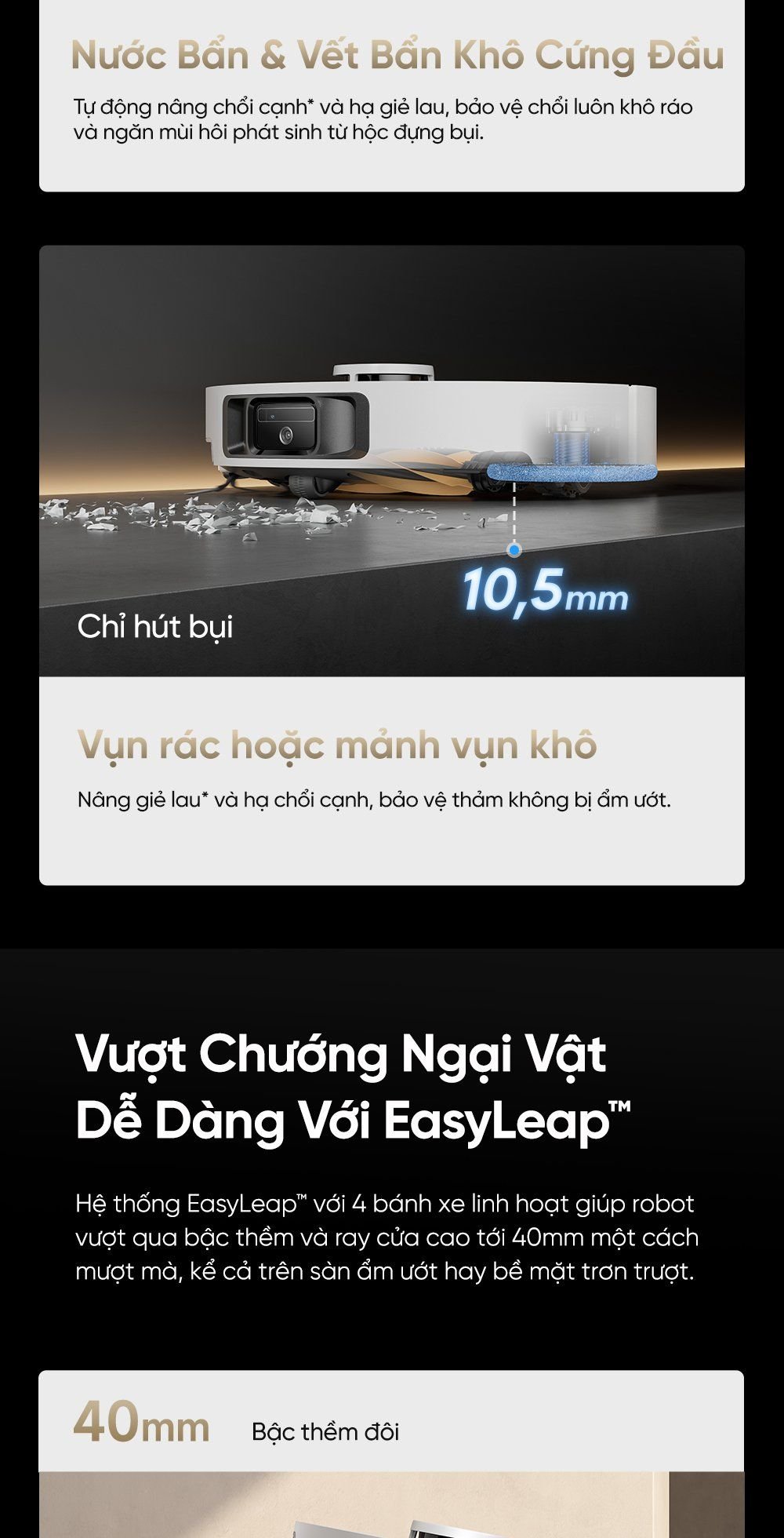 Bánh xe EasyLeap™: Vượt chướng ngại vật dễ dàng, phù hợp với nhà đa tầng.