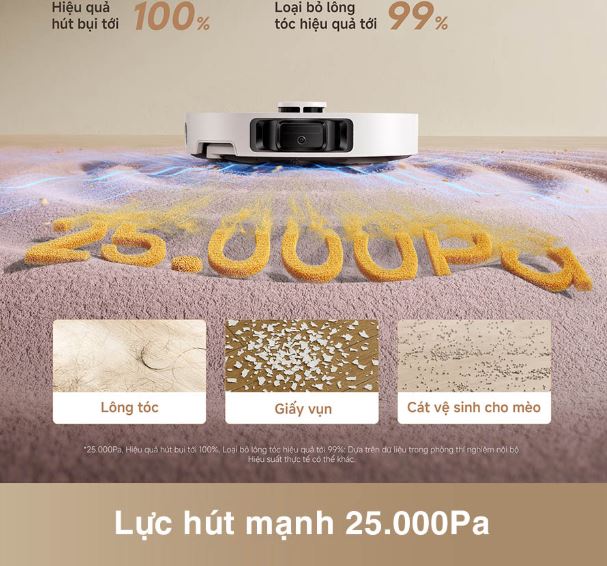 Tự Động Đổ Bụi: Tự động đổ rác vào túi chứa bụi dung tích lớn (3.2L), cho phép bạn không cần đổ rác trong khoảng 100 ngày.