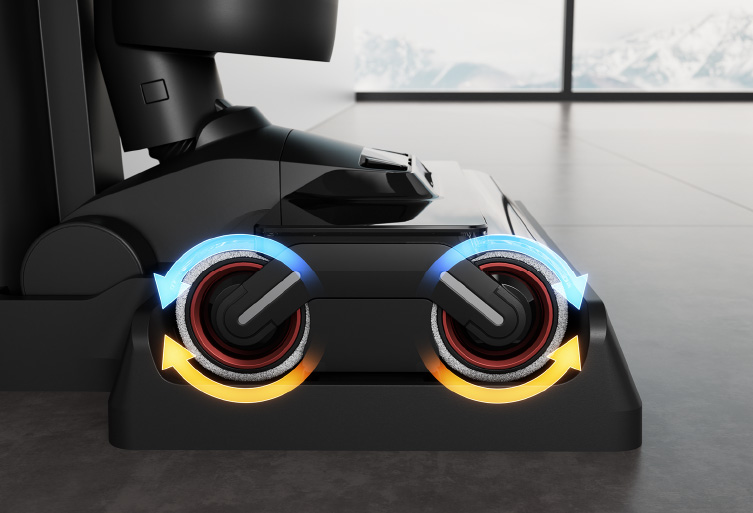 Thiết kế chổi lăn kép cải tiến với 2 bàn chải xoay ngược chiều nhau giúp tăng khả năng làm sạch các loại bụi bẩn, tóc rối.
