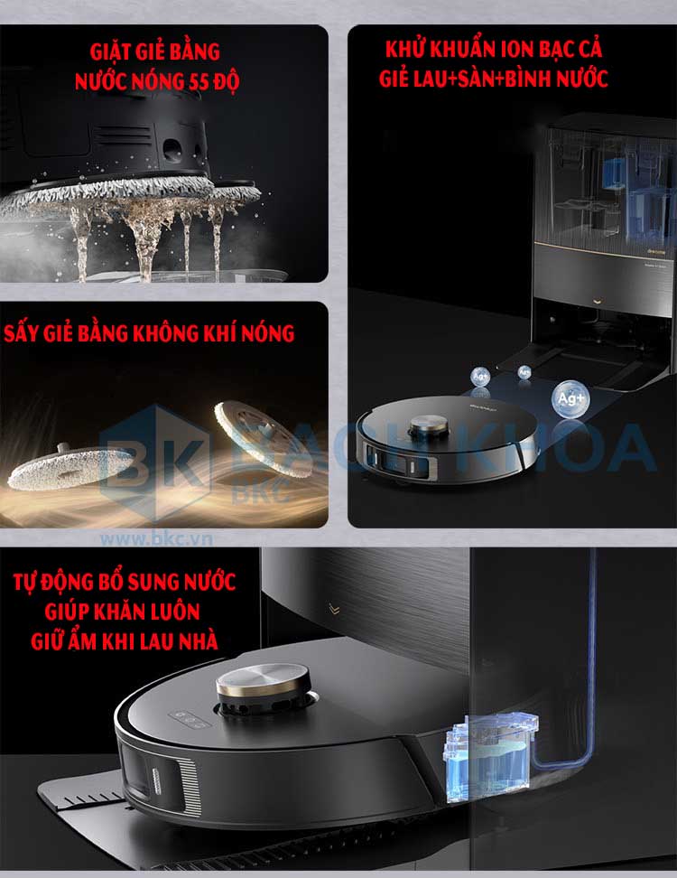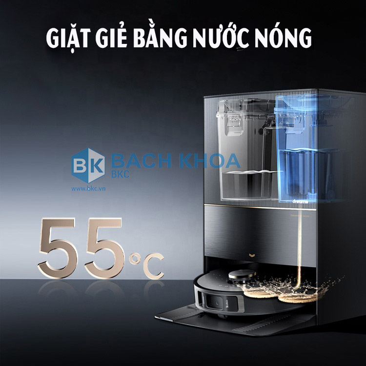 Với nước nóng 55 độ C, khả năng giặt giẻ lau của Robot được nâng cao hiệu quả đáng kể.