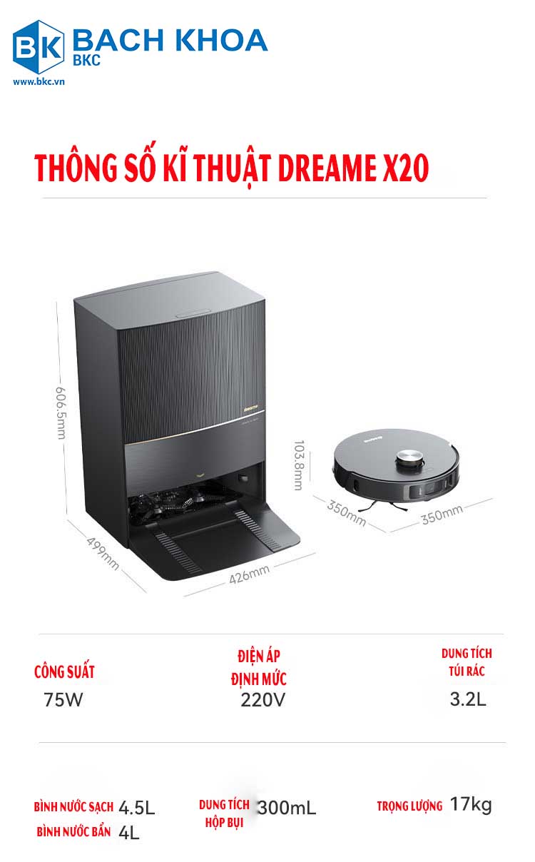 Dreame X20 – ROBOT HÚT BỤI TOÀN NĂNG - Trạm sạc 10 Trong 1