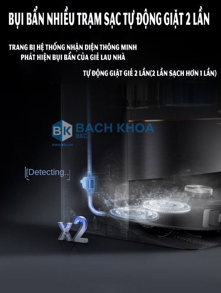 Trang bị hệ thống nhận diện thông minh tự phát hiện bụi bẩn ở giẻ lau nhà giúp máy tự động vệ sinh giẻ 2 lần.