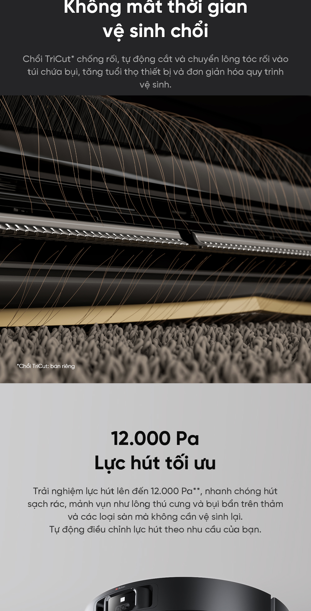 - Dock sạc ít ồn hơn khi tự động đổ rác: Giảm thiểu tiếng ồn, mang đến trải nghiệm yên tĩnh.