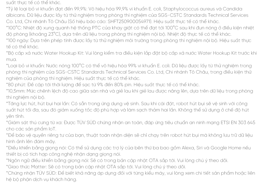 Trạm sạc toàn năng - Giặt giẻ nước nóng lên tới 100°C: Đánh bay hoàn toàn dầu mỡ cứng đầu và diệt khuẩn tuyệt đối bằng nước sôi, sau đó sấy khô bằng khí nóng. Máy còn tự động tháo rời giẻ lau để lại trạm sạc khi hút bụi thảm, giúp thảm không bao giờ bị ướt.