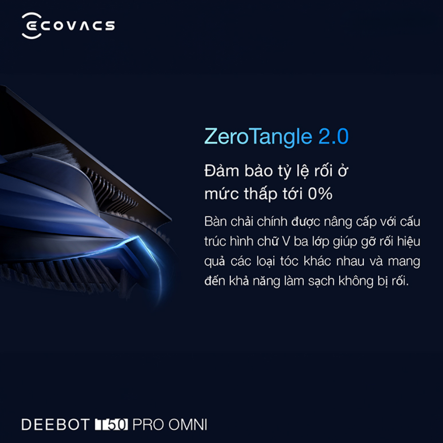 Các phiên bản máy hút bụi lau nhà đời mới sau này của Ecovacs đều được tích hợp Công nghệ chổi chống rối hiện đại ZeroTangle 2.0 và Ecovacs T50 Pro Omni cũng không phải ngoại lệ. Theo như các chuyên gia đánh giá, công nghệ ZeroTangle 2.0 là một bước đột phá trong thiết kế bàn chải của robot hút bụi.